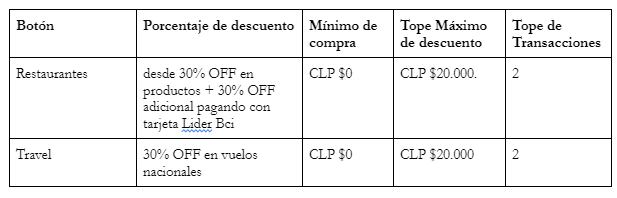La promoción aplica únicamente pagando con tarjeta Lider Bci.