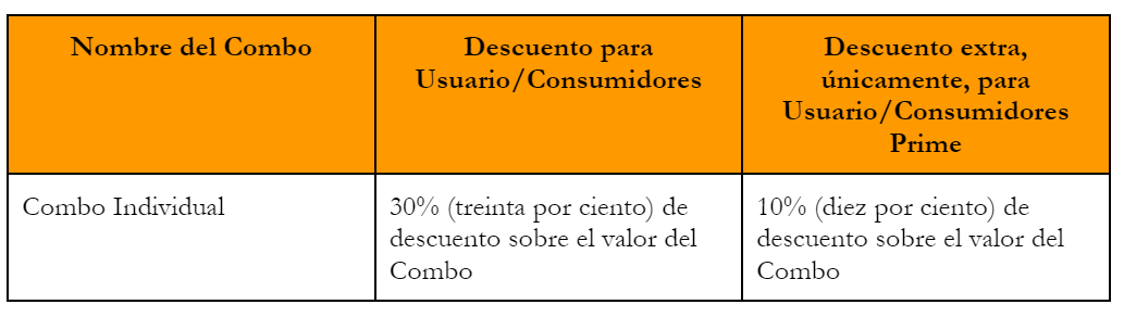 4. Promoción válida únicamente para órdenes de los combos de conformidad con la siguiente tabla: